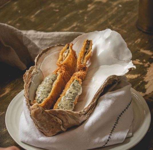 River Teign Oyster Schnitzel with Seaweed Mustard