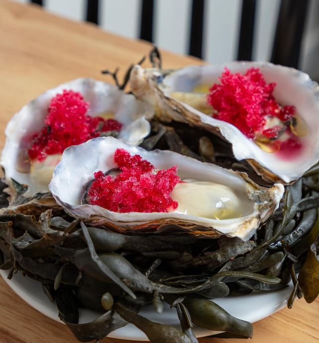 Oysters with pomegranate & Şalgam Granita