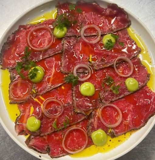 18 Feb STANLEYS Angus beef carpaccio, coffee rub, tarragon mayo, topped with pickled shallots Facebook Twitter Pinterest LinkedIn Telegram