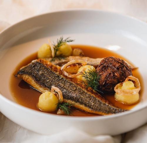 13 Feb THE HERON Pan fried Sea Bream, Pommes Purée, Shallots, Onion Bhaji and Onion Broth Facebook Twitter Pinterest LinkedIn Telegram