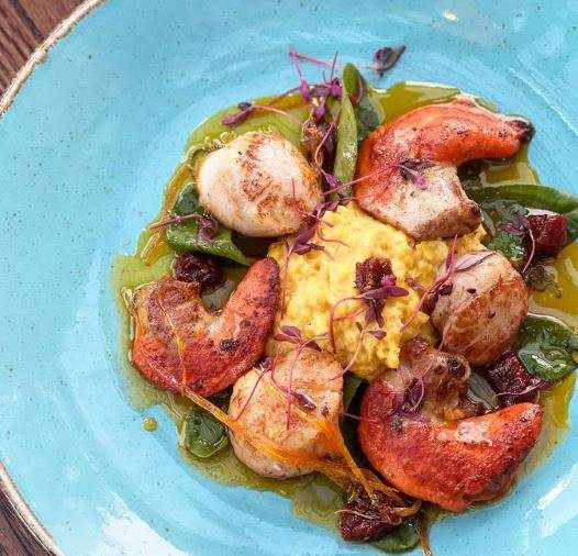 Seared scallops corn cream Sauasge